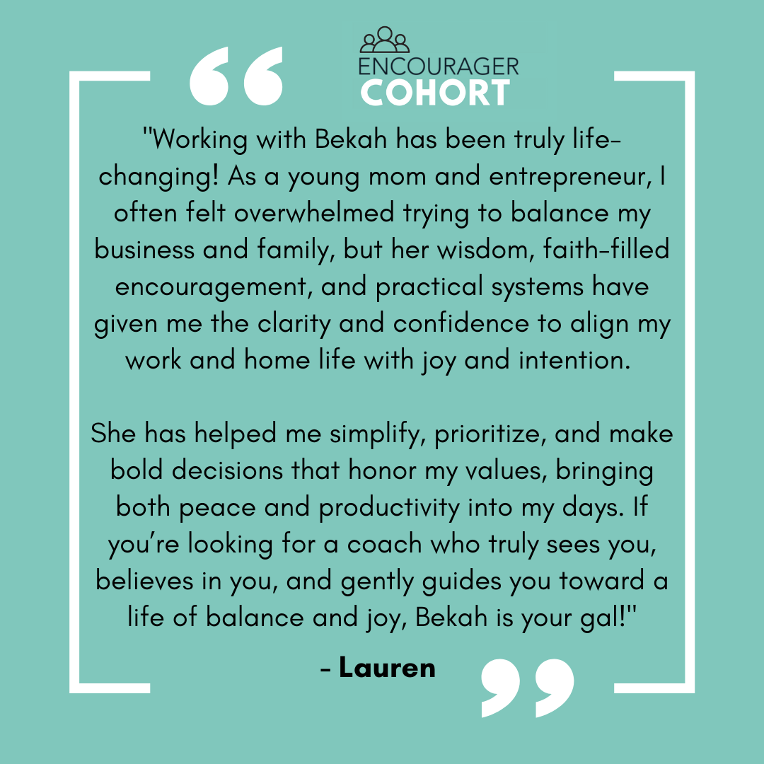 I’m so excited you’re considering joining the Encourager Cohort—a 10-week coaching program designed specifically for women who want to do BOTH home and work life well and with joy. As someone who has spent the last 20 years running businesses, raising a family, and figuring out how to harmonize all the beautiful (and sometimes chaotic) roles we carry, I know firsthand how overwhelming it can feel to keep everything running smoothly.